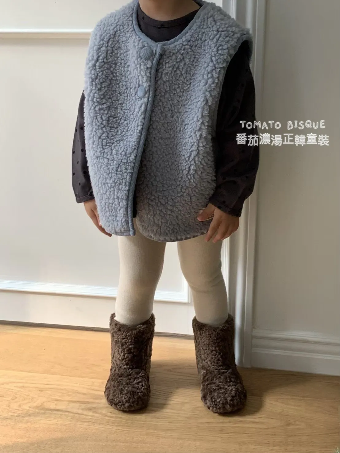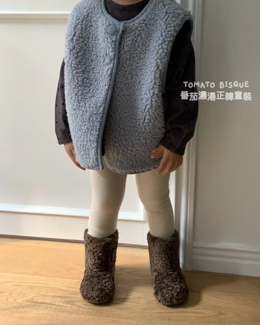 霧藍毛絨刷絨背心