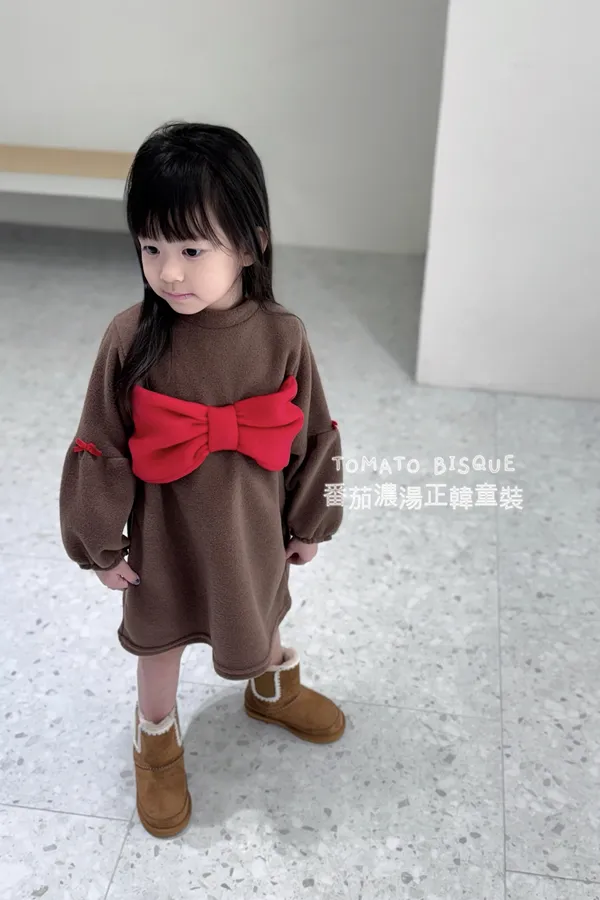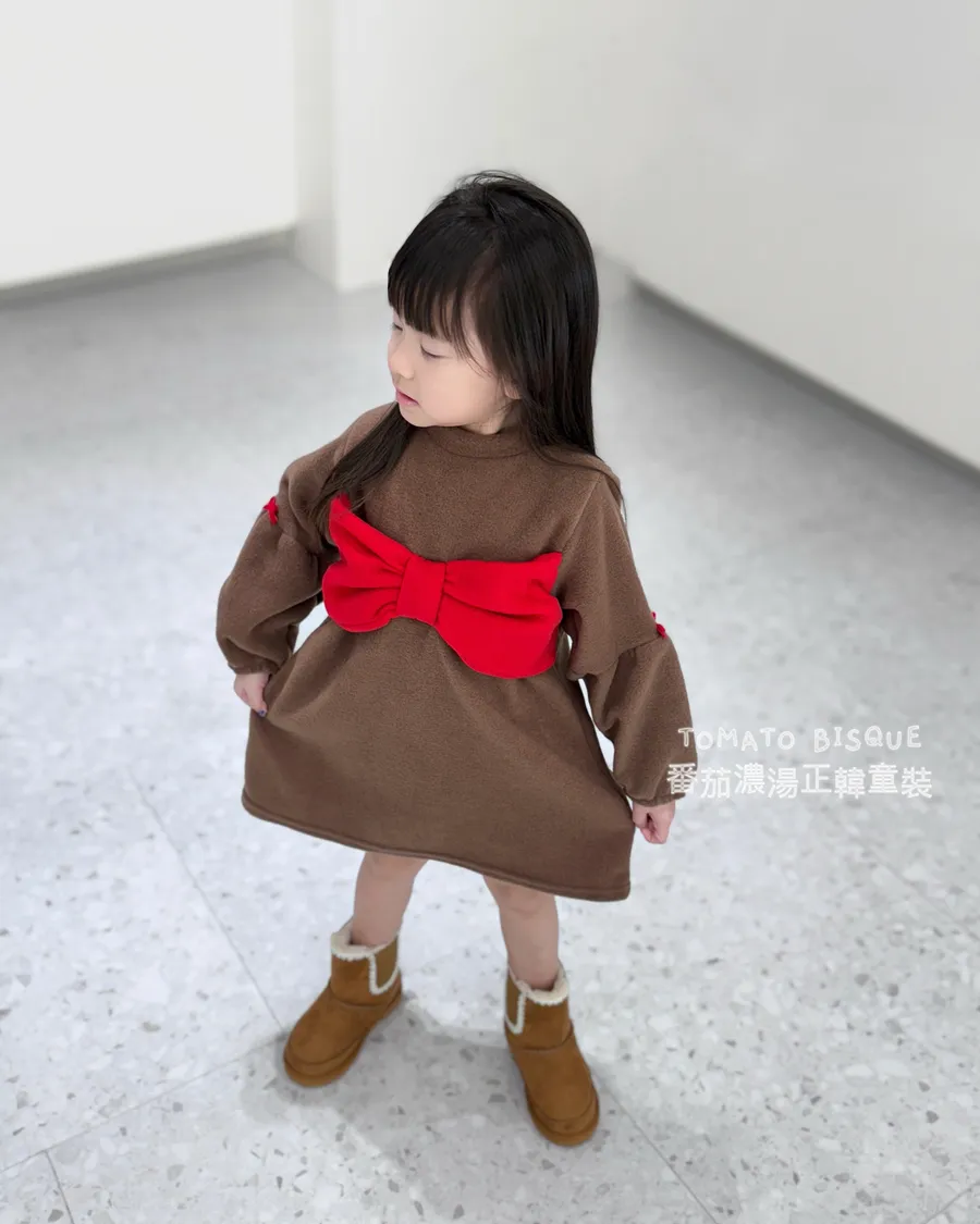 復古酒紅蝴蝶結絨面洋