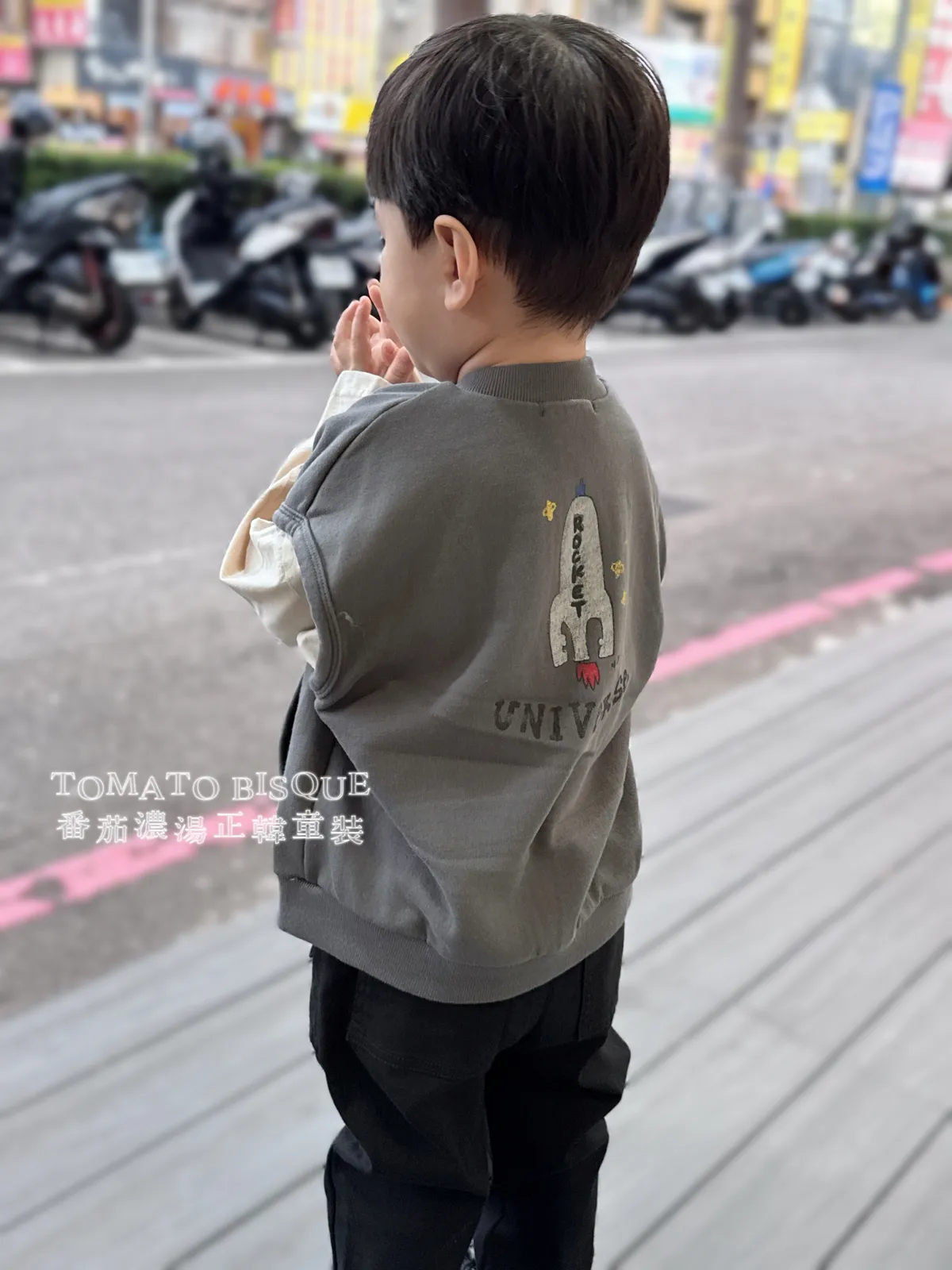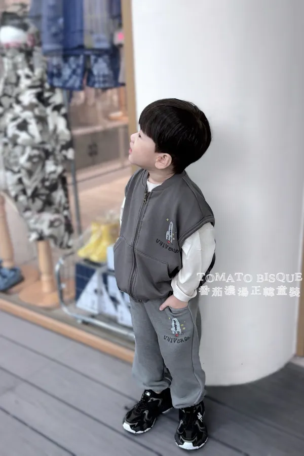 版型偏寬鬆、慵懶、韓系街頭感,不會卡小朋友動作
