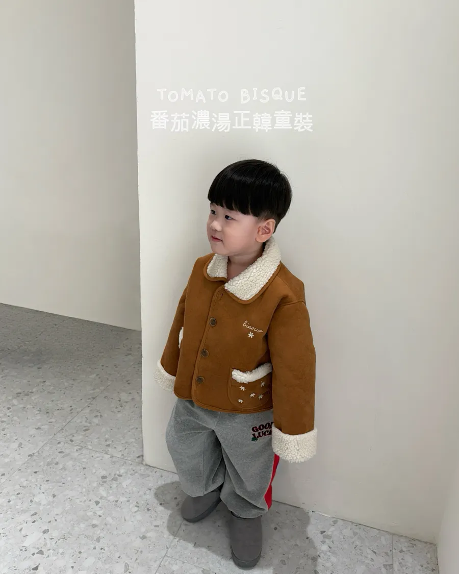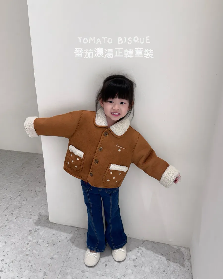 焦糖刺繡羊羔絨感外套
